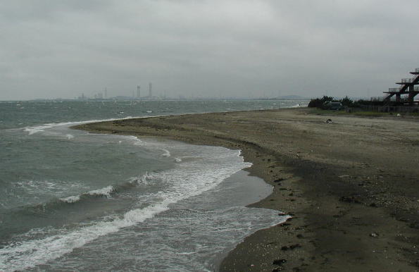ここは富津岬。写真の奥に見えるのは新日鉄君津である。