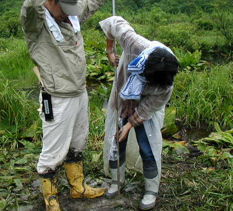 飯豊調査-谷地平湿地帯のボーリング-<2001年8月1日>
