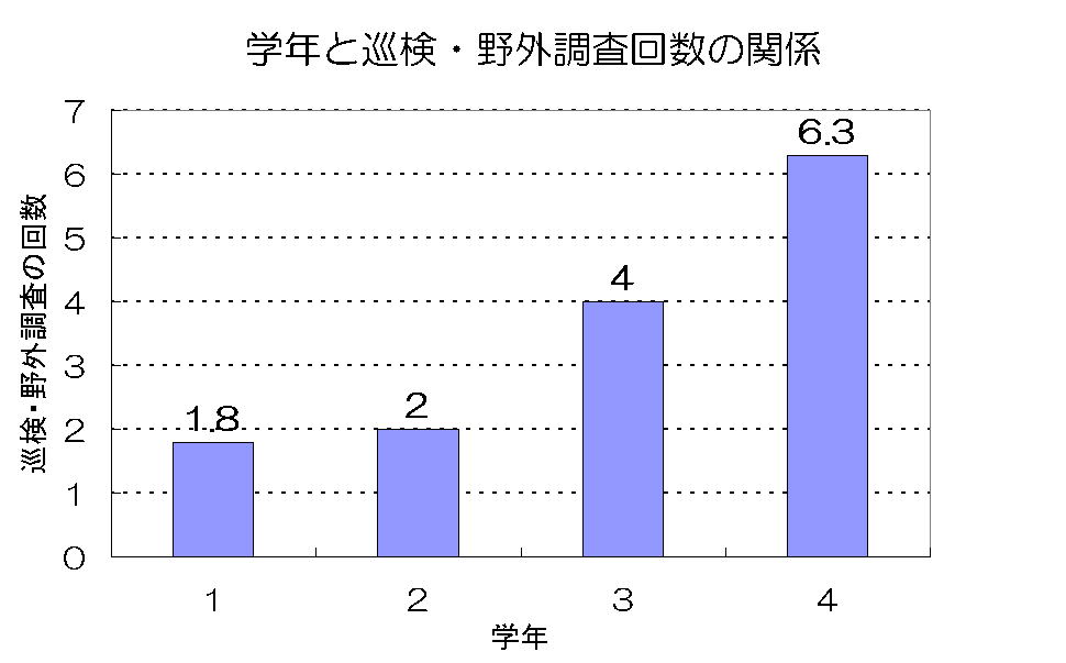 学年と巡検・野外調査の回数の関係